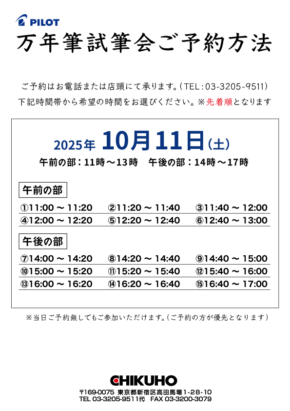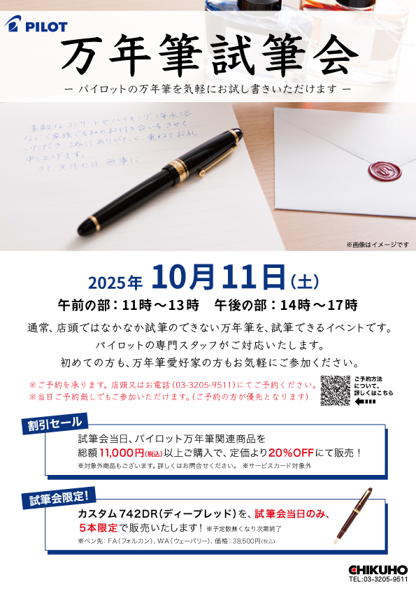 10月11日(土)、店頭1階万年筆コーナーにて、パイロットの万年筆試筆会を開催いたします。