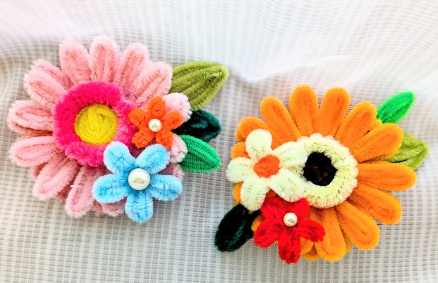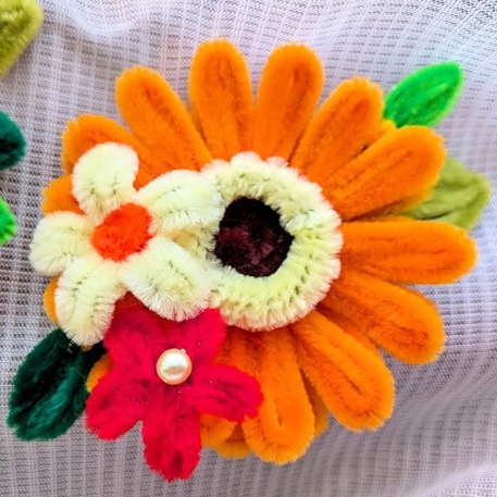 今年のコサージュレッスンは、このモールフラワー(ガーベラ)を作ります。